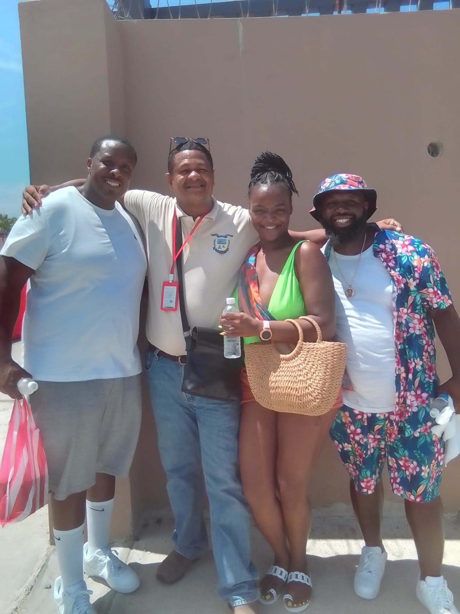 Foto con nuestros clientes al finalizar el City Tour en Puerto Plata, todos sonrientes y satisfechos tras recorrer los principales atractivos de la ciudad. El ambiente refleja una experiencia bien organizada, llena de cultura, historia y buenos momentos. Tú también puedes vivir este recorrido inolvidable — reserva tu City Tour con nosotros y descubre lo mejor de Puerto Plata. 🏛️🌴